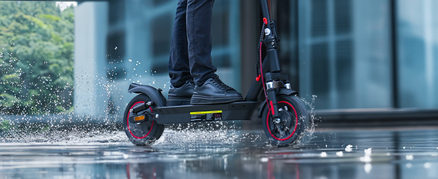 The scooter has an IP54 waterproof rating, offering protection against light rain and splashes.